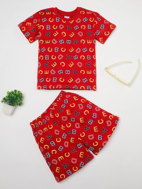Red co-ord set with colorful alphabets, fun & comfy for everyday comfort