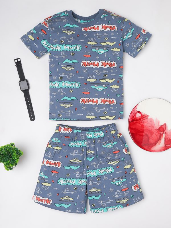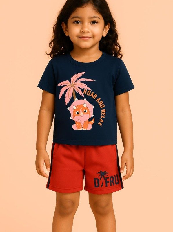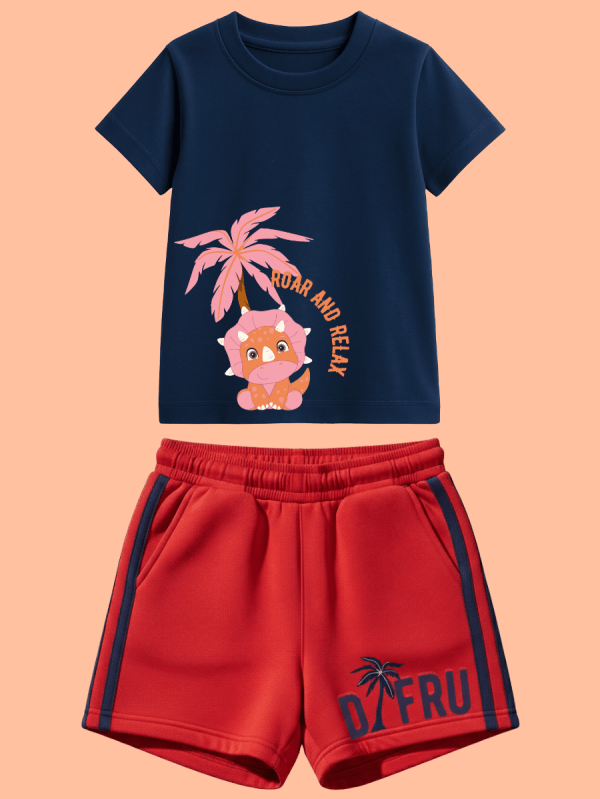 Roar & Relax Cute Dino Graphic T-Shirt & Short Set For Kid