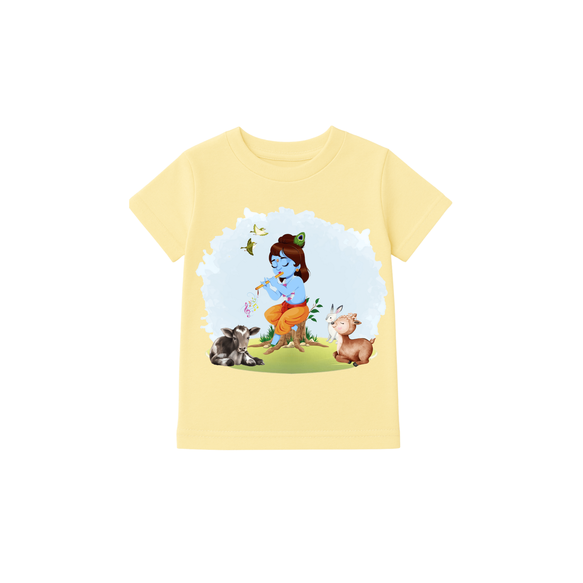 🎨 Design: Baby Krishna playing flute with animals in forest