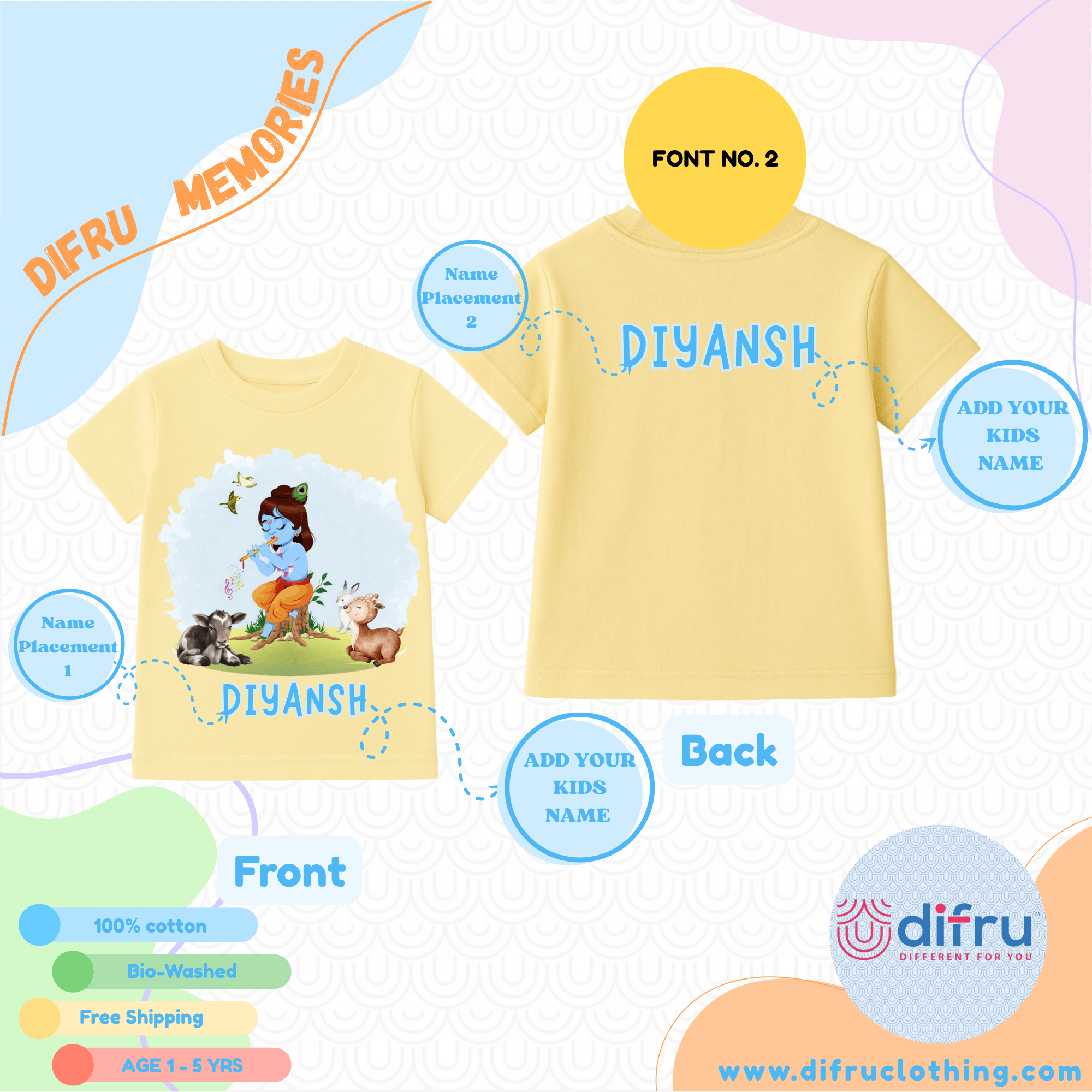 Bring home divine cuteness with this Little Krishna & Forest Friends T-shirt – a peaceful and playful Janmashtami pick for kids! Featuring baby Krishna playing the flute surrounded by deer, cows, and birds, this heartwarming design celebrates love, music, and nature.