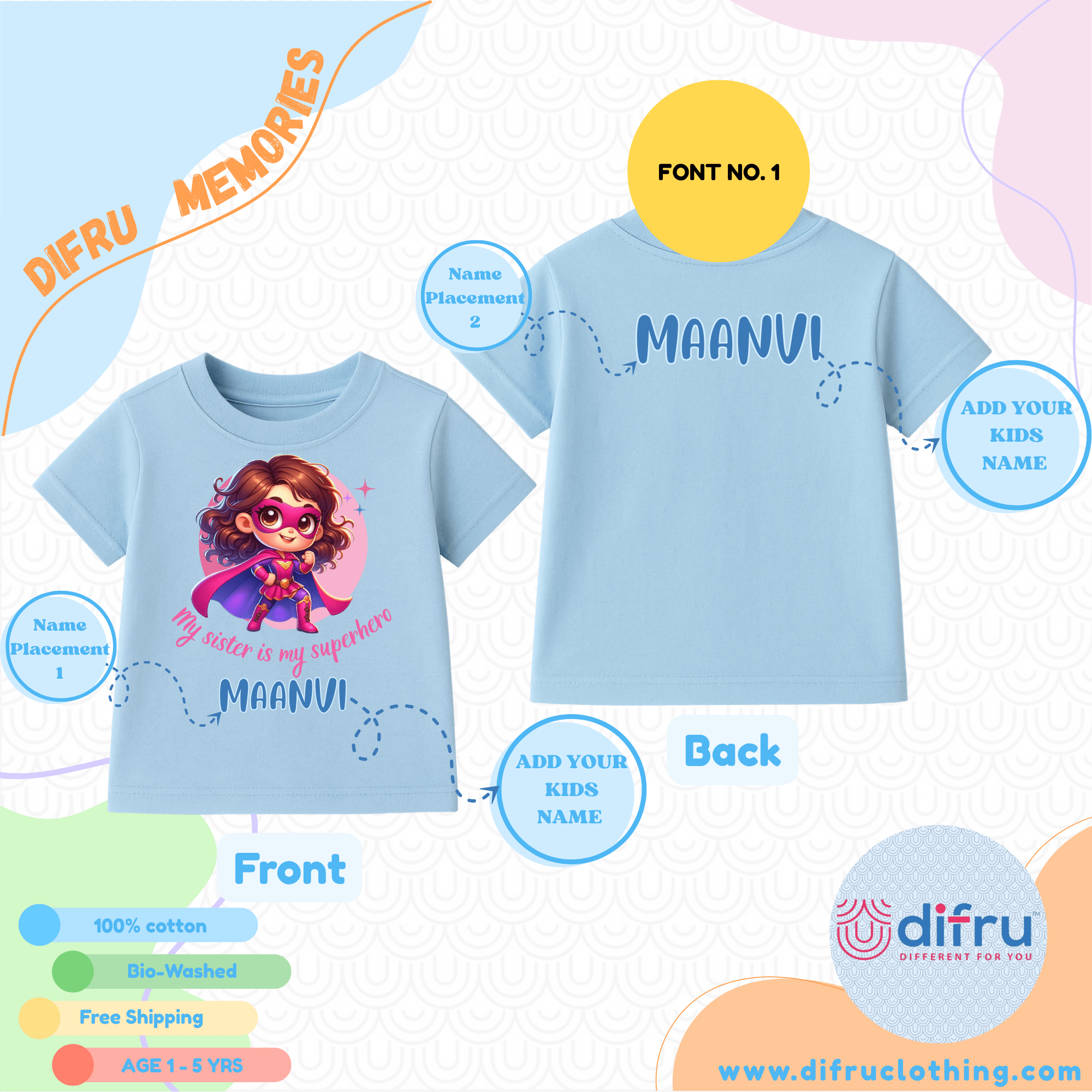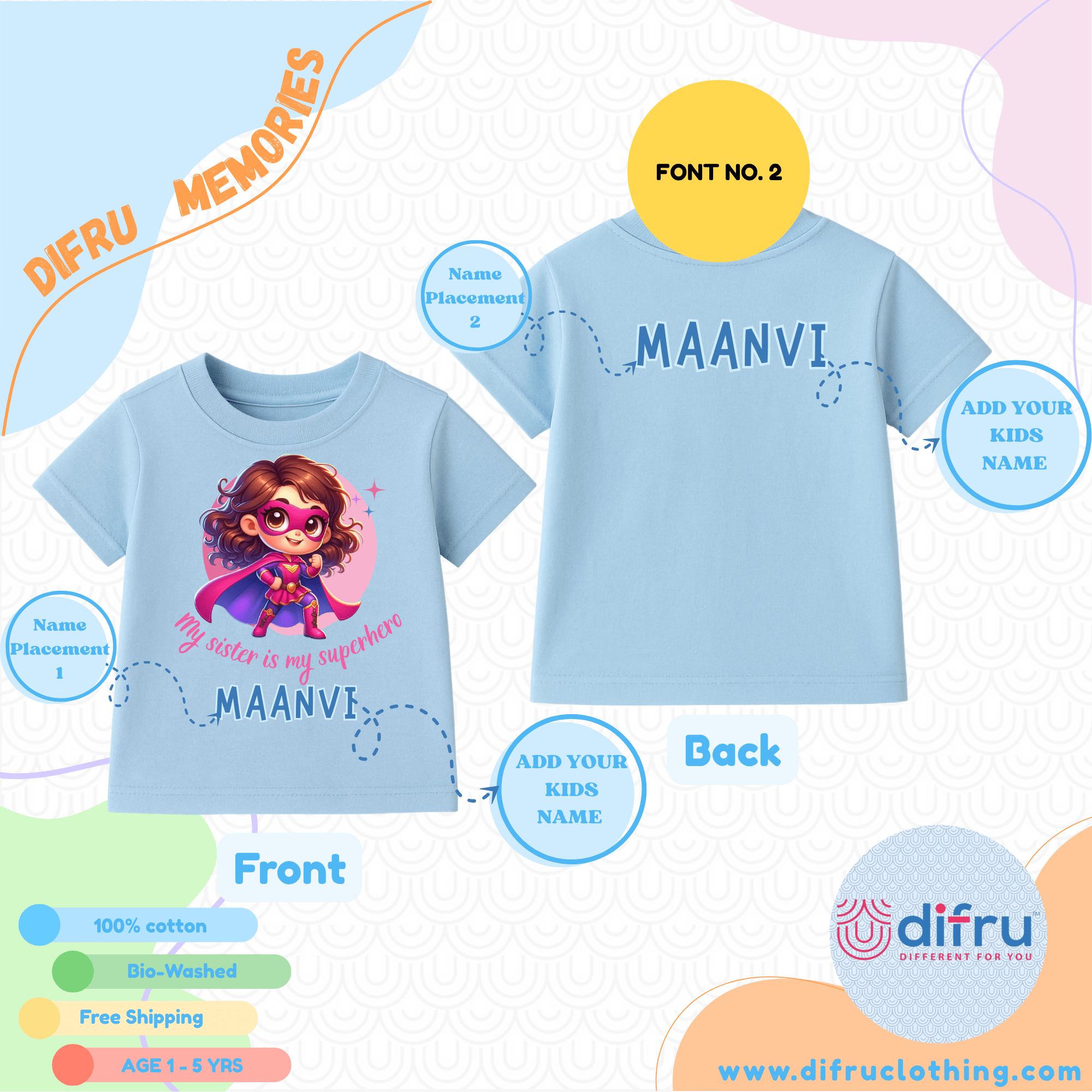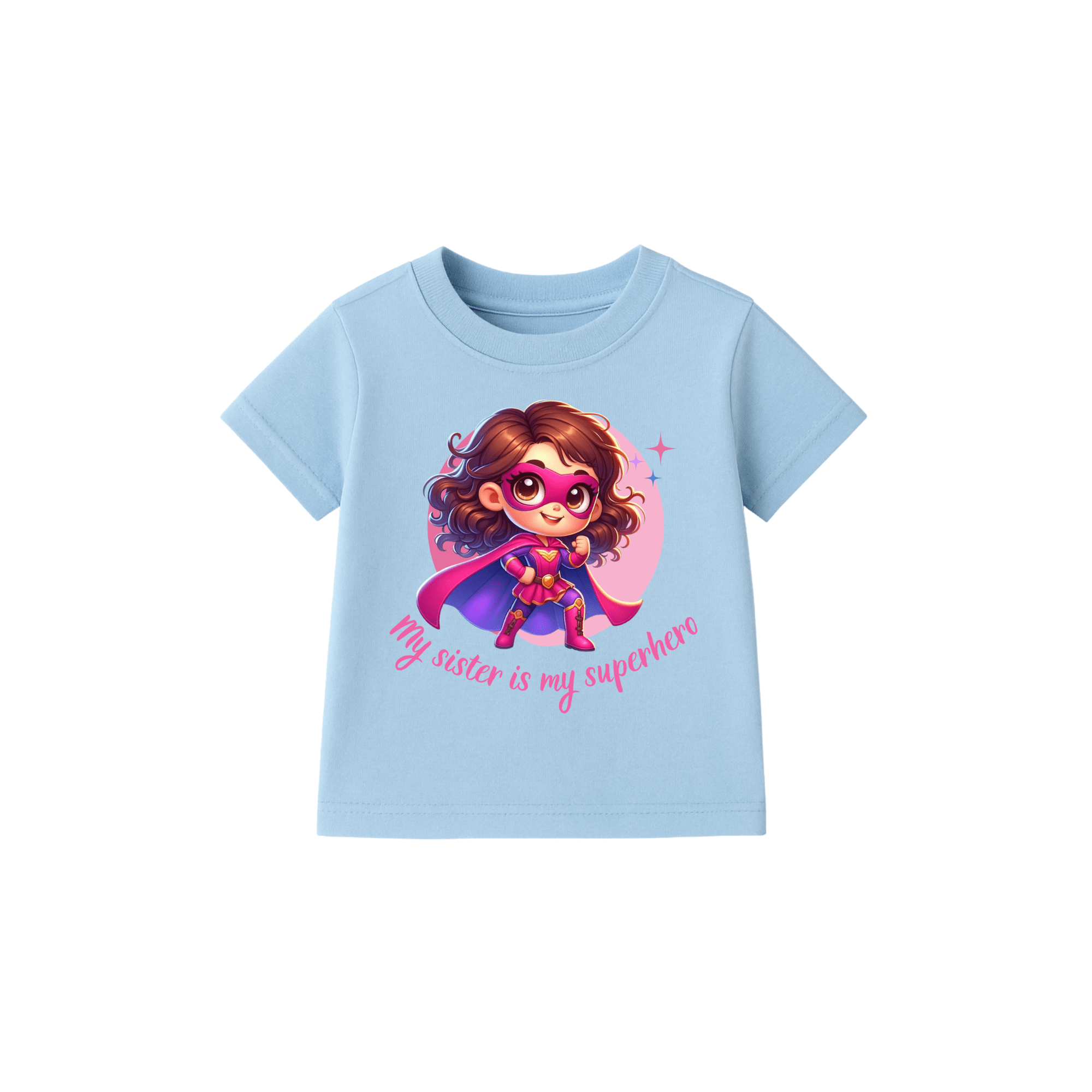 Let your little one express her superhero admiration for her big (or little) sister with this vibrant “My Sister is My Superhero” T-shirt! Featuring a cute cartoon girl in a superhero costume, this tee is a celebration of sisterhood and strength.